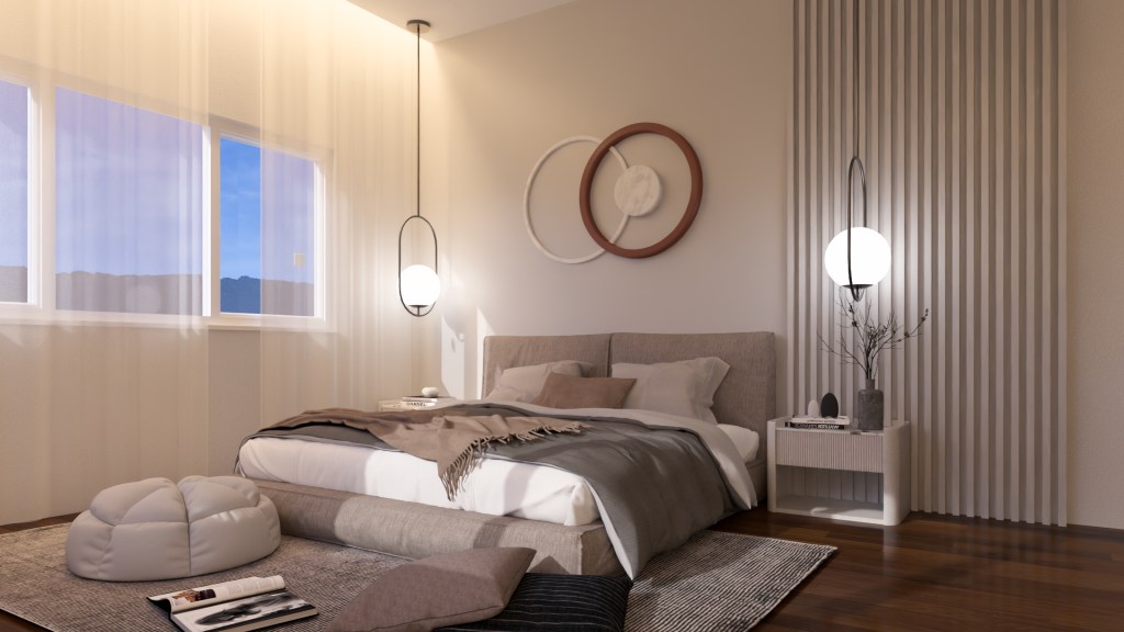 The architectural expression is deliberately modern, clean, and timeless, avoiding overly trendy forms that may date quickly. A restrained material palette—textured stone finishes, neutral renders, warm wood accents, and metal detailing—positions the development comfortably within the mid to upper residential market.