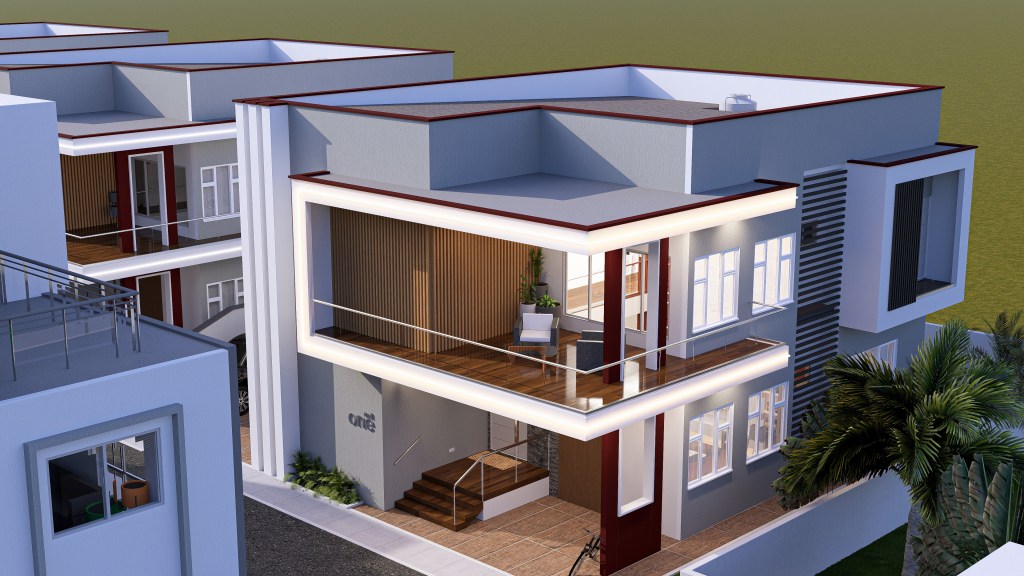 This project explores the design and visualization of an 8-unit townhome residential estate located in Kwabenya, Accra, an area experiencing steady residential growth and increasing demand for modern, well-planned housing.
